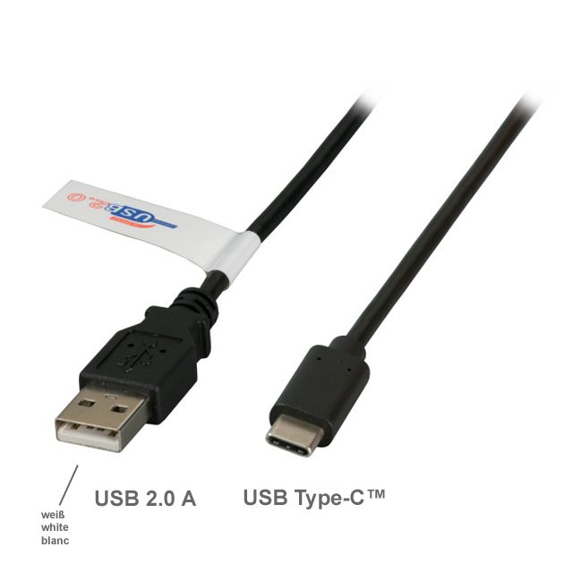 USB cable Type-C™ male to USB 2.0 A male 50m, certified cable (TID 200000215), black